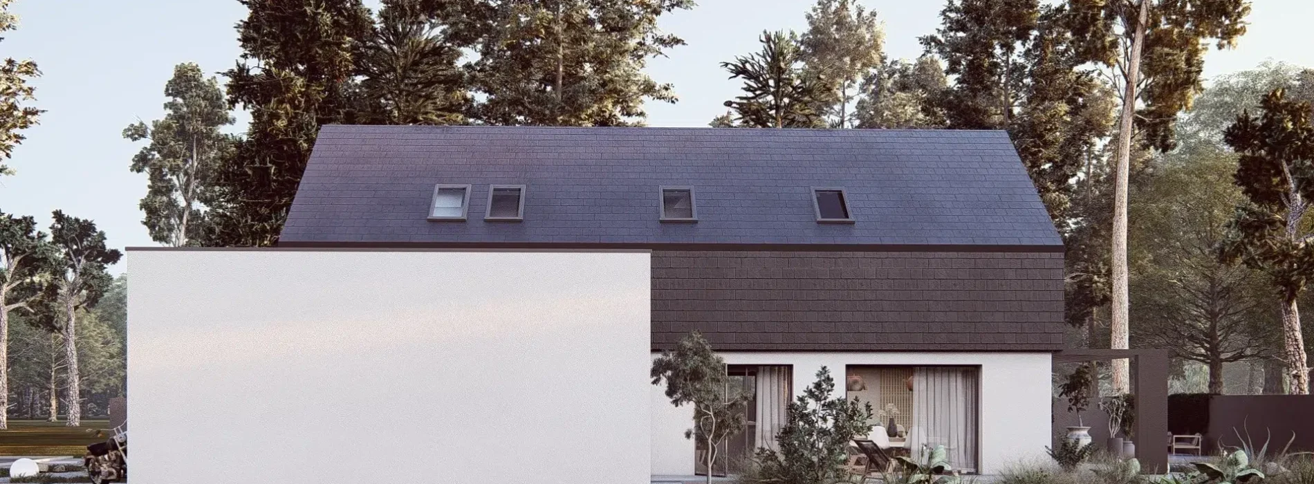 Garaż podziemny bywa również naturalnym rozwiązaniem na działkach o znacznym spadku terenu. W takich warunkach możliwe jest częściowe zagłębienie budynku w skarpie i wykorzystanie różnicy poziomów do stworzenia wygodnego wjazdu. Zamiast walczyć z ukształtowaniem terenu, projekt może wykorzystać jego potencjał, integrując garaż z topografią działki. Takie rozwiązanie sprzyja zachowaniu proporcji bryły domu oraz umożliwia lepsze wpisanie go w krajobraz, bez konieczności rozbudowy w poziomie.